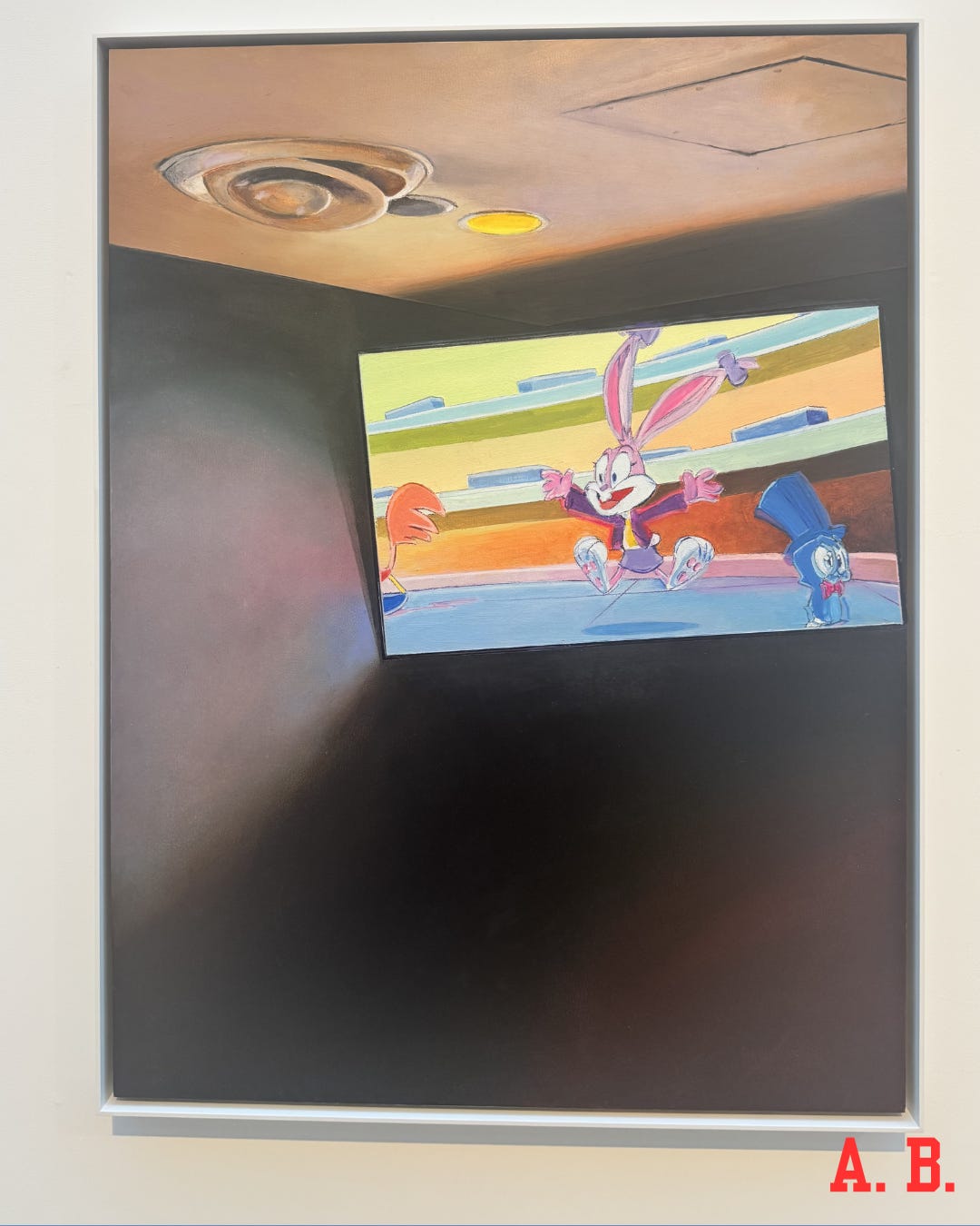 I’ll stop pontificating and will leave you with my favorite train of thought from the conversation. There is a painting of a green faux-marble elevator that looks like it could be in any midtown building because it IS Blair’s dentist’s office in midtown. The show is full of ordinary sites made extraordinary by the alchemy of one person’s fixed attention. Fry quoted herself telling a friend over drinks that she is “becoming more spiritual with age”, noting that she meant that the banal things in her everyday life have accumulated deeper meaning with time and history. Blair quoted his friend David Humphries’ phrase “exquisite banality” to refer to his choice in subjects.